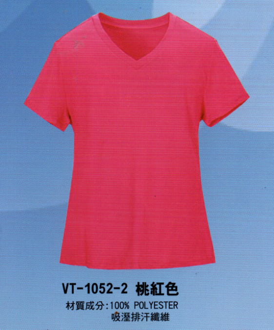 桃紅色女V領T 材質: 100POLYESTER 吸濕排汗衫 SIZE:S~3L